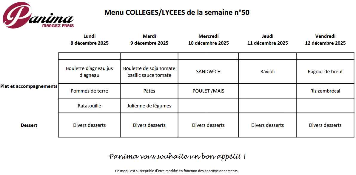 Cliquer sur l’image ci-dessous pour télécharger les menus de la semaine en cours ou à venir.